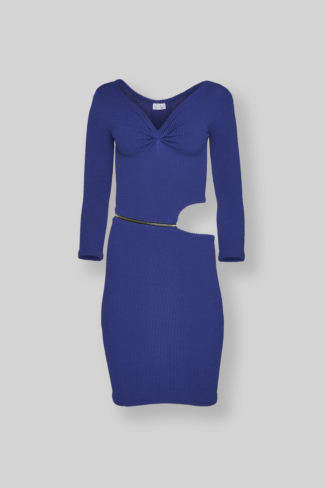 Short dress, blueviolet, with cut-out and golden zipper at the waist