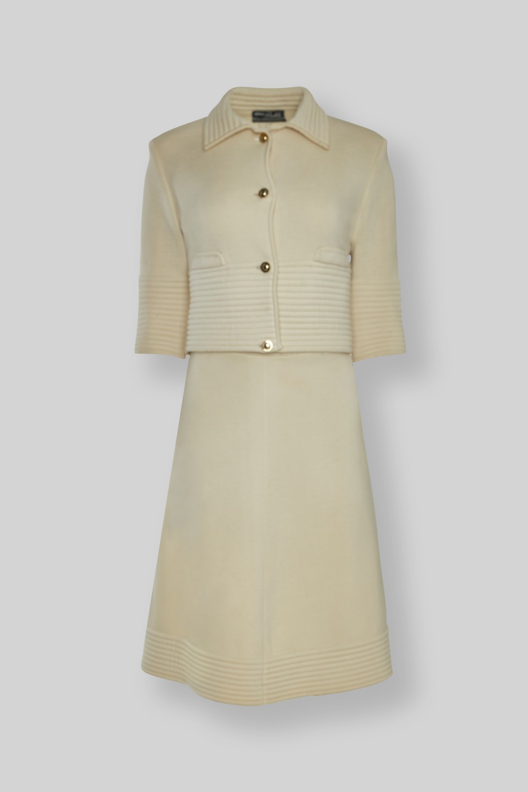 Jacket with skirt, beige ,with quilting borders, golden buttons