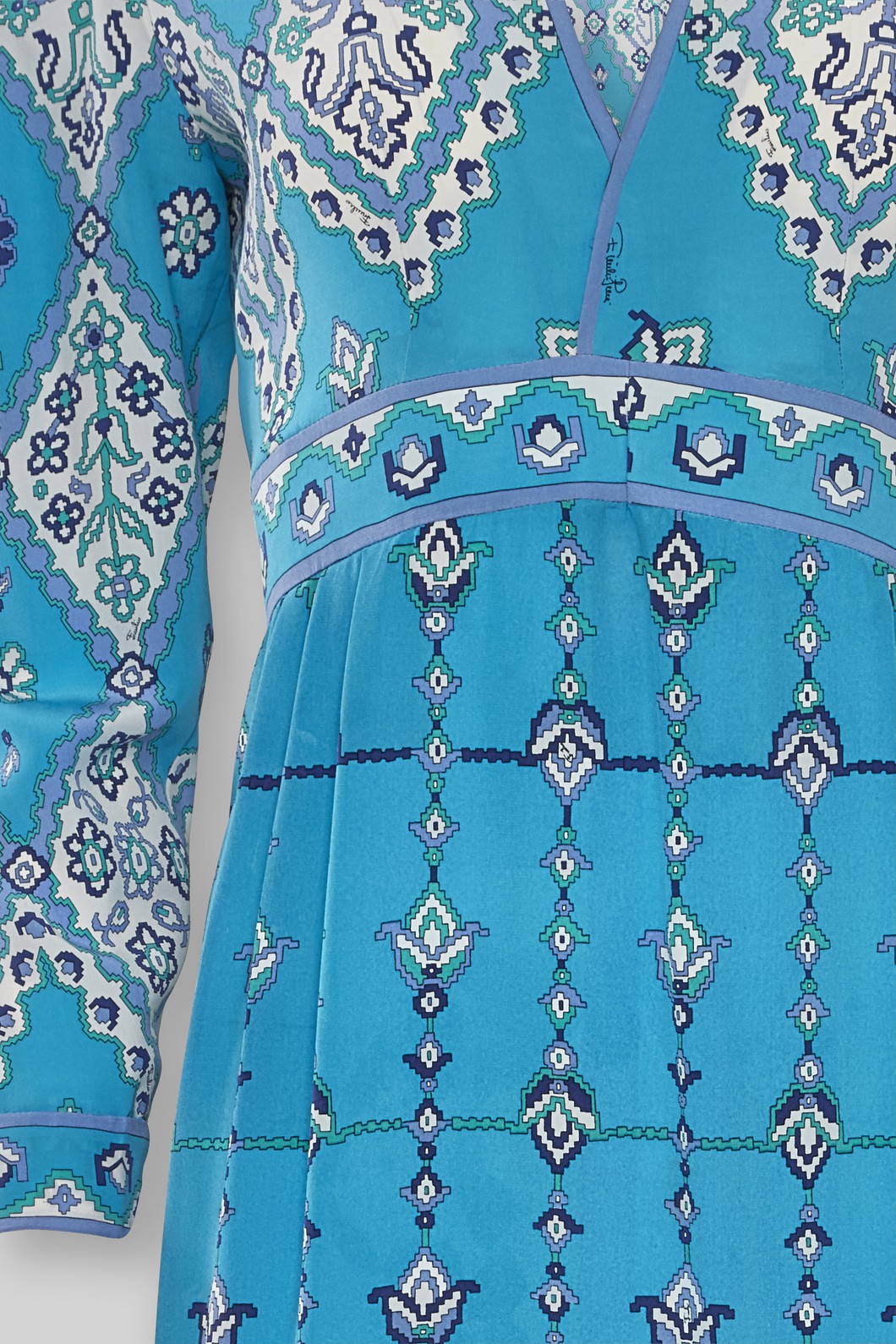 Dress, turquoise blue, floral print , blue piping