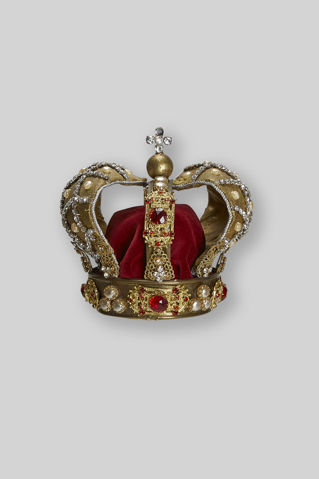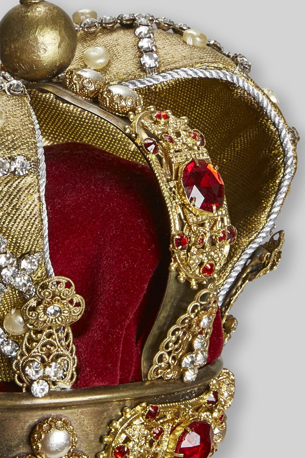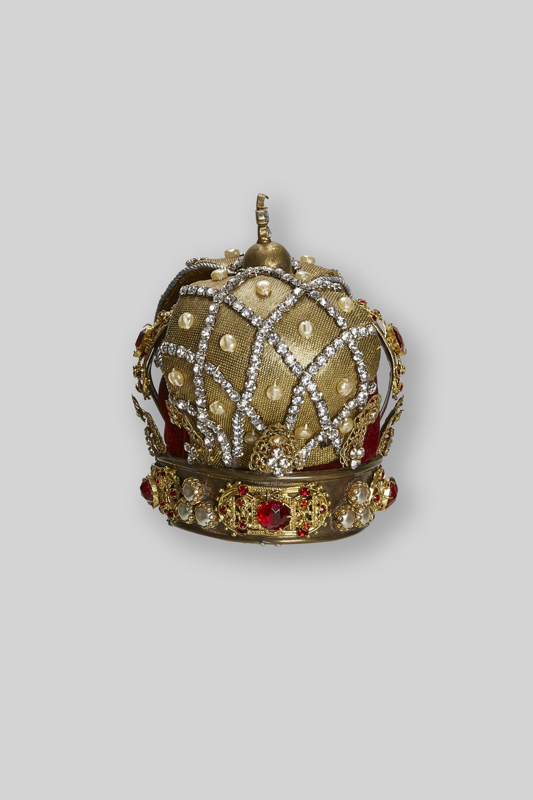 Kleine Krone, gold mit roten Steinen und rotem Samtfutter