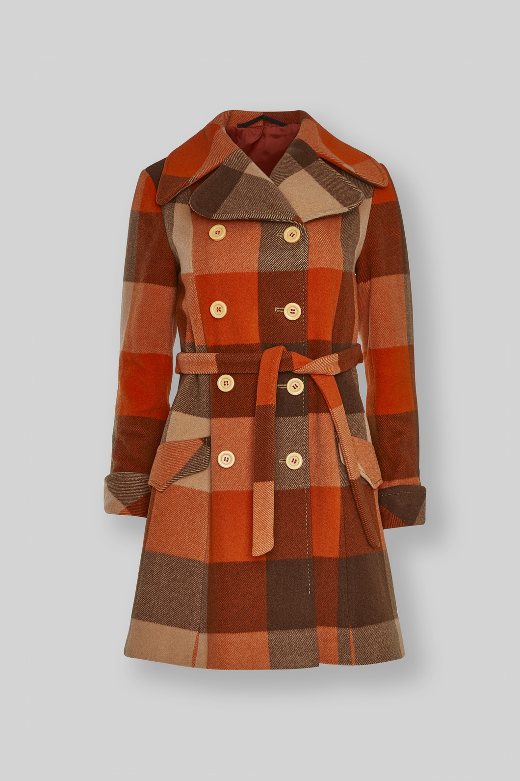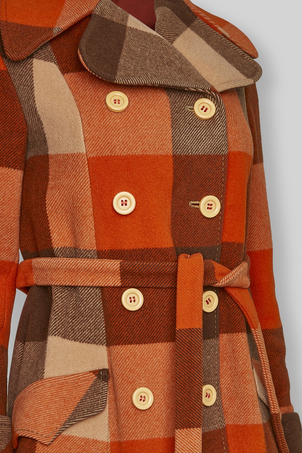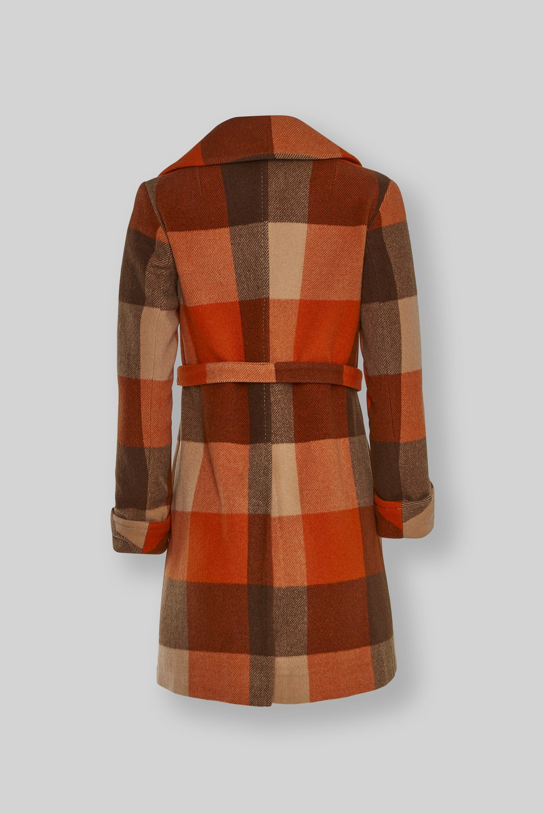Kurzer Mantel, doppelreihig, orange-braun-beige kariert, großer Kragen